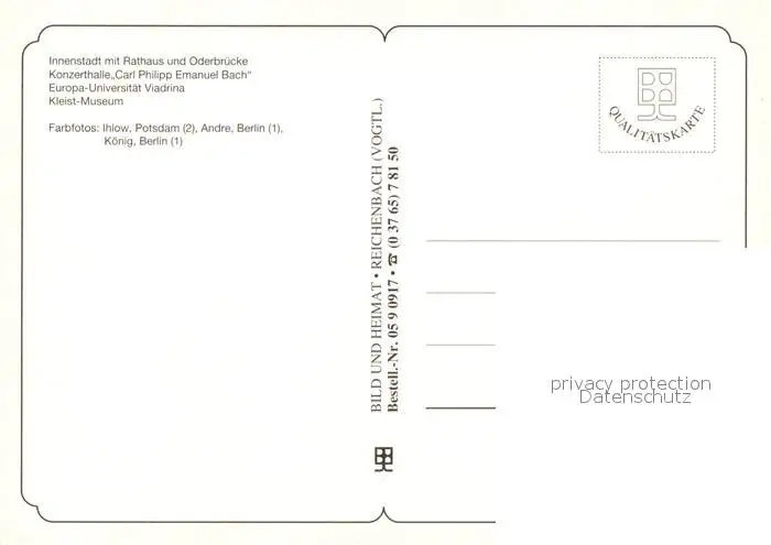 Frankfurt_Oder Innenstadt Rathaus Oderbruecke Konzerthalle Europa Universitaet Viadrina Kleist Museum Frankfurt Oder postalisch nicht gelaufen nach 1965 Erhaltung siehe scans [FriedD77] Frierer