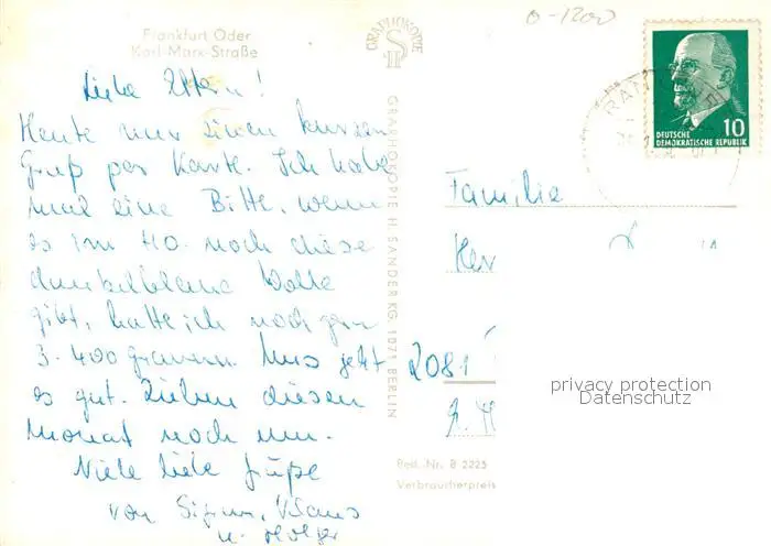 Frankfurt_Oder Karl Marx Strasse Frankfurt Oder postalisch gelaufen nach 1965 Erhaltung siehe scans [WerneD78] WernPID7