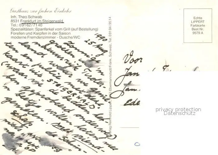 Frankfurt_Steigerwald Gasthaus zur frohen Einkehr Gaststube Gaestezimmer Ortsansicht postalisch nicht gelaufen nach 1965 Erhaltung siehe scans [WerneD78] WernPID7