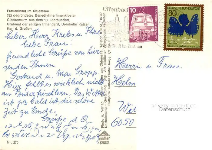 Frauenchiemsee Fliegeraufnahme Benediktinerinnenkloster Grabmal der selingen Irmengard Frauenchiemsee postalisch gelaufen 1978 Erhaltung siehe scans [LiesaD40] LiesID40