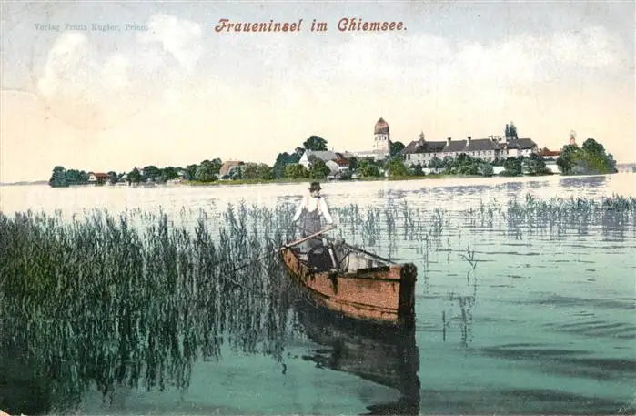 Fraueninsel_Chiemsee Boot Panorama Fraueninsel Chiemsee postalisch gelaufen bis 1920 Erhaltung siehe scans [KathaD81] Kathoren