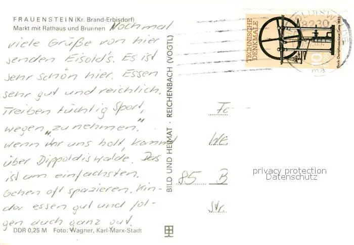 Frauenstein_Brand-Erbisdorf Markt mit Rathaus und Brunnen Frauenstein postalisch nicht gelaufen nach 1965 Erhaltung siehe scans [WerneD78] WernPID7