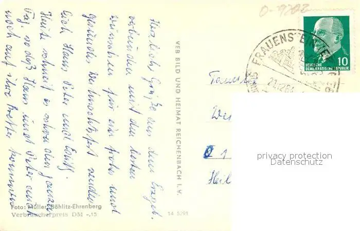 Frauenstein_Sachsen Panorama Marktplatz FDJ Jugendherberge Platz der Befreiung Postam Frauenstein_Sachsen postalisch gelaufen 1964 Erhaltung siehe scans [KathaD81] Kathoren