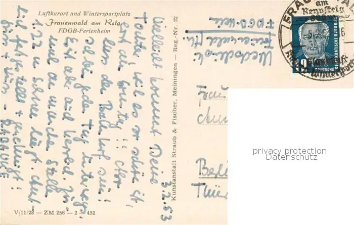Frauenwald_Thueringen FDGB Ferienheim Frauenwald Thueringen postalisch gelaufen 1953 Erhaltung siehe scans [FriedD77] Frierer