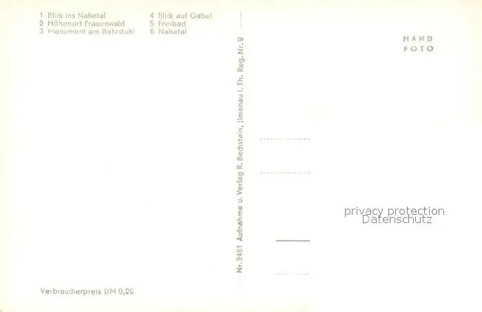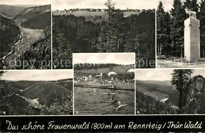 Frauenwald_Thueringen Panorama Blick ins Nahetal Monument Gabel Freibad Frauenwald Thueringen postalisch nicht gelaufen 1959 Erhaltung siehe scans [FriedD77] Frierer