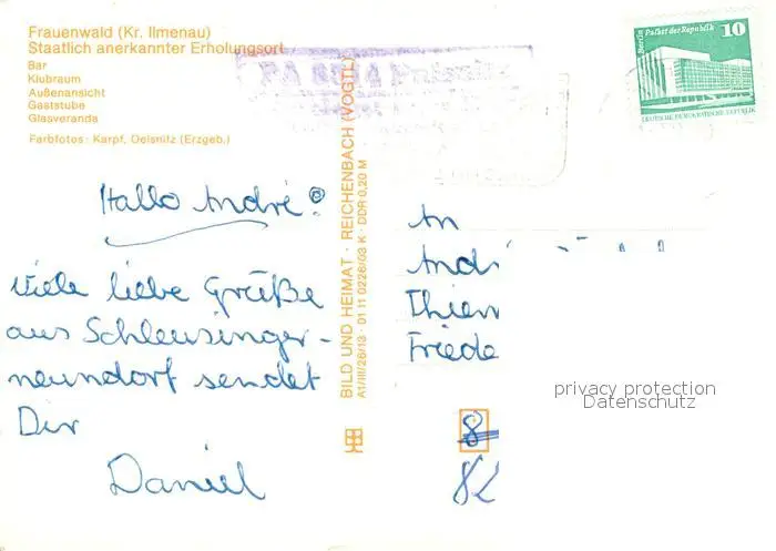 Frauenwald_Thueringen Waldpension Fraubachmuehle Bar Klubraum Gaststube Glasveranda Frauenwald Thueringen postalisch gelaufen nach 1965 Erhaltung siehe scans [WerneD78] WernPID7
