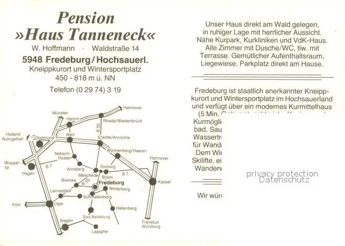 Fredeburg_Ratzeburg Pension Haus Tanneneck Fliegeraufnahme Winteridyll Fredeburg Ratzeburg postalisch nicht gelaufen nach 1965 Werbekarte (keine Postkarte) Erhaltung siehe scans [WerneD78] Werbekarte (keine Postkarte) WernPID7