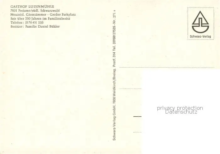 Freiamt_Emmendingen_BW Gasthof Ludinmuehle postalisch nicht gelaufen nach 1965 Erhaltung siehe scans [FriedD77] Frierer