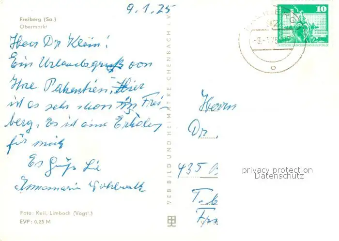 Freiberg_Sachsen Obermarkt Brunnen Freiberg Sachsen postalisch gelaufen 1975 Erhaltung siehe scans [KathaD81] Kathoren