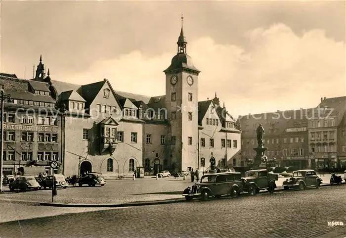 Freiberg Sachsen Kategorie Alte Ansichtskarten Postkarten bx49163 Freiberg_Sachsen Obermarkt mit Rathaus Denkmal Otto des Reichen Freiberg Sachsen postalisch nicht gelaufen 1957 Erhaltung siehe scans [FriedD77]
