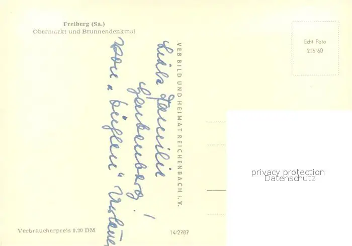 Freiberg_Sachsen Obermarkt und Brunnendenkmal Freiberg Sachsen postalisch nicht gelaufen nach 1965 Erhaltung siehe scans [WerneD78] WernPID7