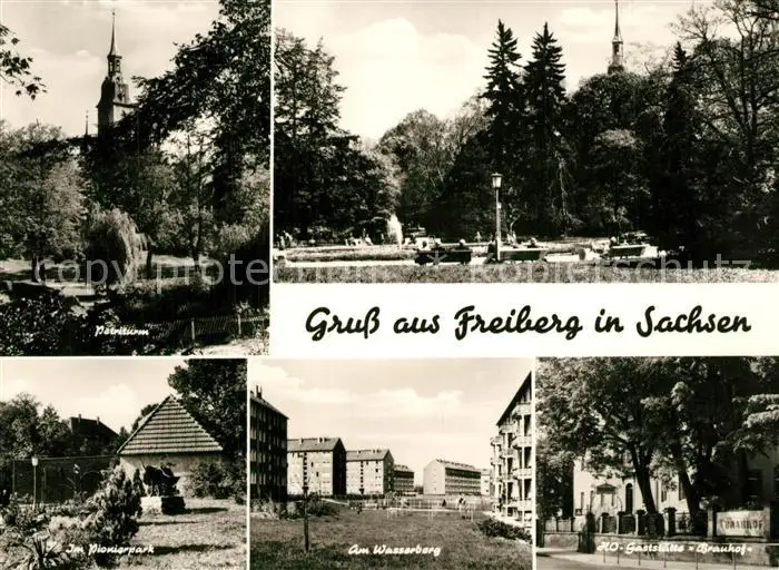 AK / Ansichtskarte Freiberg_Sachsen Petriturm Wasserberg HO Gasthaus Brauhof Freiberg Sachsen