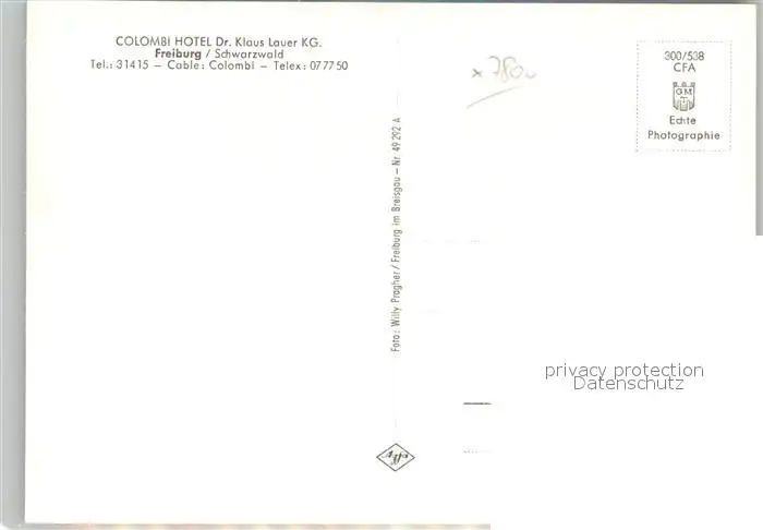 Freiburg_Breisgau Colombi Hotel Freiburg Breisgau postalisch nicht gelaufen 1921-1965 Erhaltung siehe scans [WerneD78] WernPID7