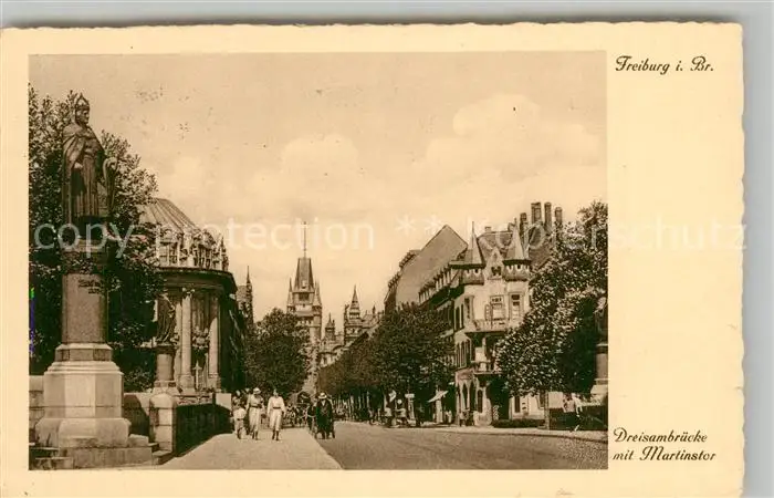 Freiburg_Breisgau Dreisambruecke Martinstor Freiburg Breisgau postalisch gelaufen 1935 Erhaltung siehe scans [KathaD81] Kathoren