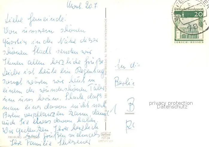 Freiburg_Breisgau Fliegeraufnahme Freiburg Breisgau postalisch gelaufen nach 1965 Erhaltung siehe scans [WerneD78] WernPID7