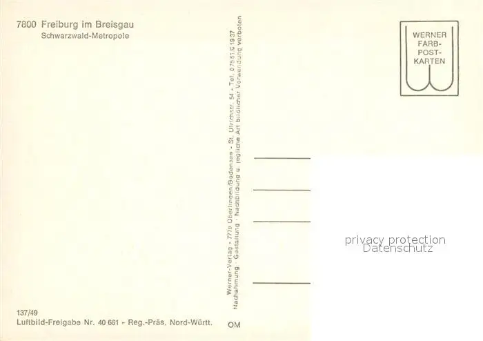 Freiburg_Breisgau Fliegeraufnahme Freiburg Breisgau postalisch nicht gelaufen nach 1965 Erhaltung siehe scans [PaolaD17] PaolPID1