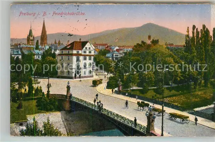 Freiburg_Breisgau Friedrichsbruecke Muenster Freiburg Breisgau postalisch gelaufen 1916 Feldpost Erhaltung siehe scans [KathaD81] Feldpost Kathoren