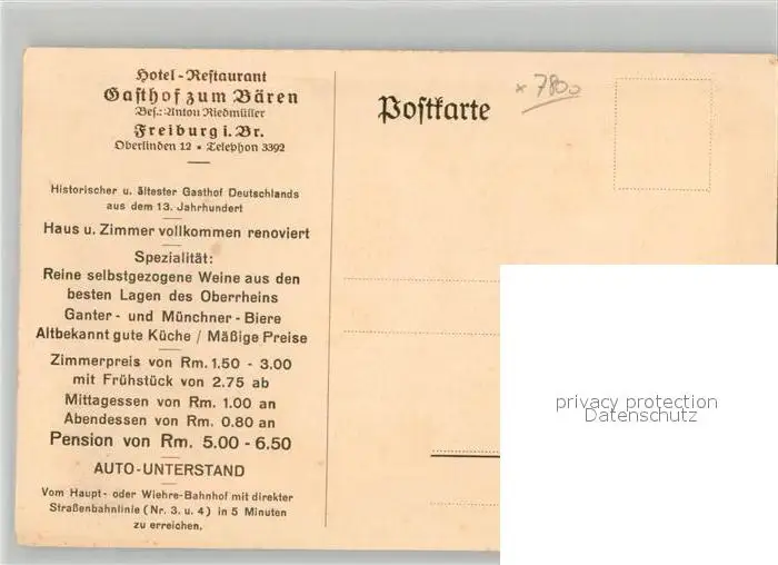 Freiburg_Breisgau Gasthof zum Baeren Oberlinden Freiburg Breisgau postalisch nicht gelaufen 1921-1965 Erhaltung siehe scans [WerneD78] WernPID7