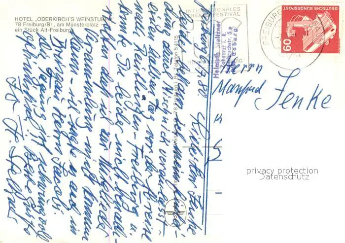 Freiburg_Breisgau Hotel Oberkirchs Weinstuben Freiburg Breisgau postalisch gelaufen 1980 Erhaltung siehe scans [FriedD77] Frierer