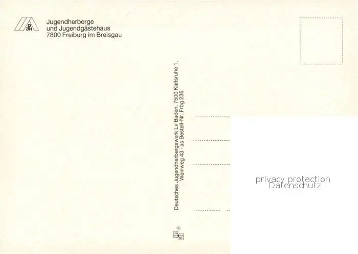 Freiburg_Breisgau Jugendherberge Jugendgaestehaus Freiburg Breisgau postalisch nicht gelaufen nach 1965 Erhaltung siehe scans [WerneD78] WernPID7
