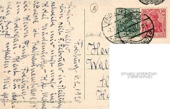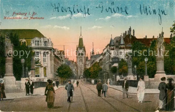 Freiburg_Breisgau Kaiserbruecke mit Martinstor Freiburg Breisgau postalisch gelaufen 1920 Erhaltung siehe scans [WerneD78] WernPID7