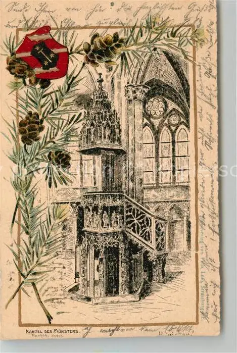 Freiburg_Breisgau Kanzel des Muensters Zeichnung Freiburg Breisgau postalisch gelaufen 1902 Erhaltung siehe scans [WerneD78] WernPID7