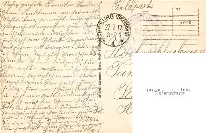 Freiburg_Breisgau Lehrerseminiar Freiburg Breisgau postalisch gelaufen 1917 Feldpost - Stempel Erhaltung siehe scans [LiesaD40] Feldpost - Stempel LiesID40