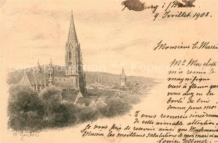 Freiburg_Breisgau Muenster Freiburg Breisgau postalisch gelaufen 1903 Erhaltung siehe scans [WerneD78] WernPID7