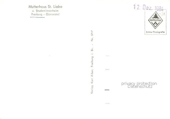 Freiburg_Breisgau Mutterhaus St. Lioba u. Studentinnenheim Aussenansicht Freiburg Breisgau postalisch nicht gelaufen 1984 Erhaltung siehe scans [LiesaD40] LiesID40