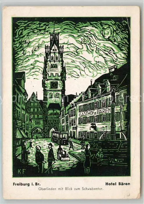 Freiburg_Breisgau Oberlinden mit Schwabentor und Gasthof Baeren Freiburg Breisgau postalisch nicht gelaufen 1921-1965 Erhaltung siehe scans [WerneD78] WernPID7