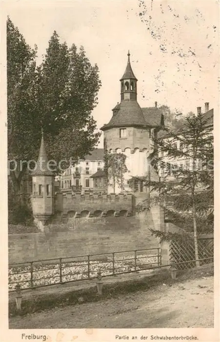 Freiburg_Breisgau Partie an der Schwabentorbruecke Freiburg Breisgau postalisch gelaufen 1913 Erhaltung siehe scans [WerneD78] WernPID7
