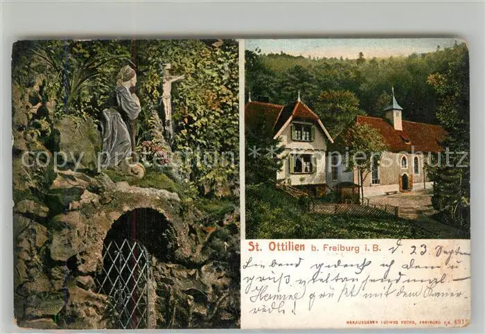 Freiburg_Breisgau St Ottilien Grotte Freiburg Breisgau postalisch gelaufen 1903 Erhaltung siehe scans [WerneD78] WernPID7