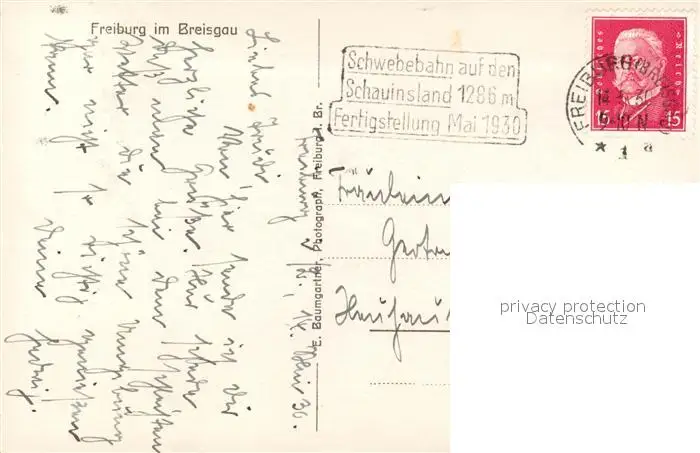 Freiburg_Breisgau Stadtansicht Freiburg Breisgau postalisch gelaufen 1930 Erhaltung siehe scans [WerneD78] WernPID7