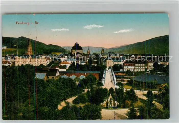 Freiburg_Breisgau Stadtpanorama Freiburg Breisgau postalisch gelaufen 1919 Erhaltung siehe scans [KathaD81] Kathoren