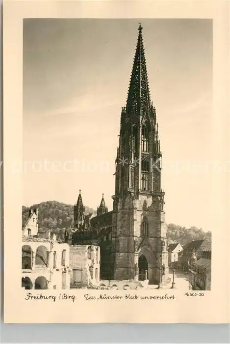 Freiburg_Breisgau Unversehrtes Muenster nach Fliegerangriff 1944 Freiburg Breisgau postalisch nicht gelaufen 1945 Erhaltung siehe scans [WerneD78] WernPID7