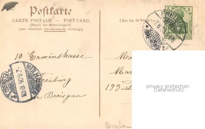 Freiburg_Breisgau Waldsee Freiburg Breisgau postalisch gelaufen 1905 Erhaltung siehe scans [LiesaD40] LiesID40