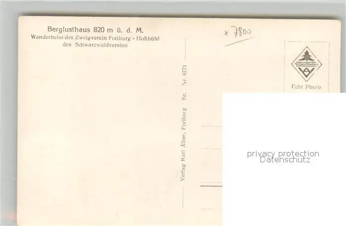 Freiburg_Breisgau Wanderheim Berglust Hohbuehl Freiburg Breisgau postalisch nicht gelaufen 1921-1965 Erhaltung siehe scans [WerneD78] WernPID7