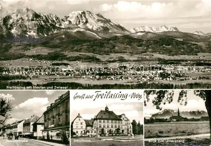 AK / Ansichtskarte Freilassing Staufen Zwiese Hauptstrasse Schulhaus Untersberg Freilassing