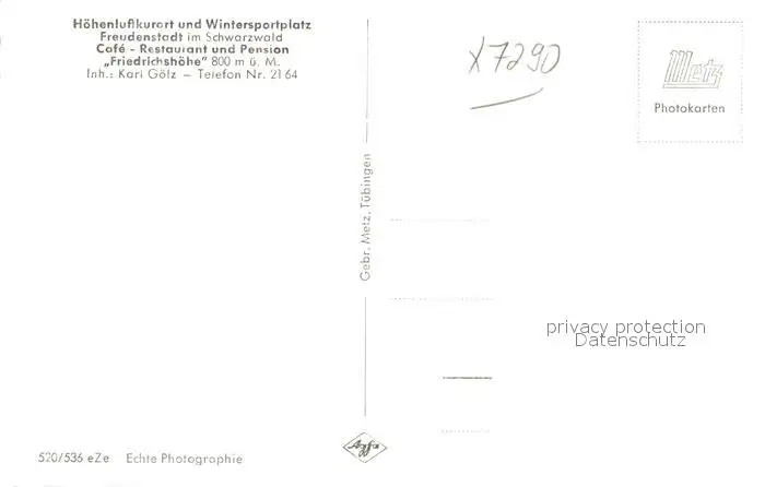 Freudenstadt Cafe Restaurant Pension Friedrichshoehe Aussichtsturm Kurort Schwarzwald Freudenstadt postalisch nicht gelaufen nach 1965 Erhaltung siehe scans [FriedD77] Frierer