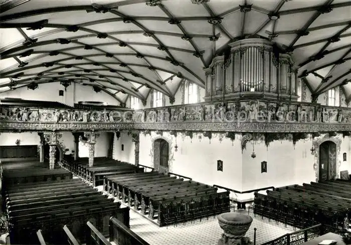 AK / Ansichtskarte Freudenstadt Ev Stadtkirche Blick auf den Taufstein Orgel Reliefs Kirche vor Zerstoerung 1945 Repro Freudenstadt