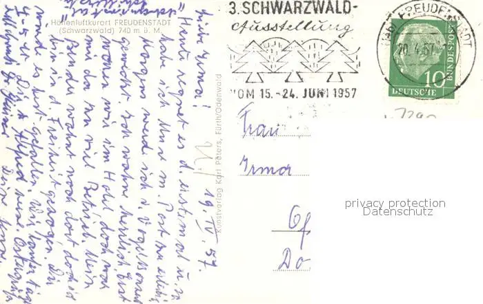 Freudenstadt Landschaftspanorama Blick zum Kurort im Schwarzwald Freudenstadt postalisch gelaufen 1957 Erhaltung siehe scans [FriedD77] Frierer