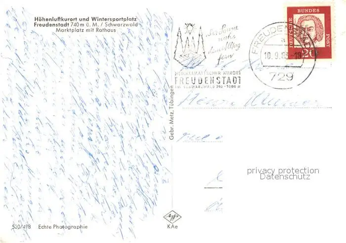 Freudenstadt Marktplatz Brunnen Rathaus Freudenstadt postalisch gelaufen 1963 Erhaltung siehe scans [WerneD78] WernPID7