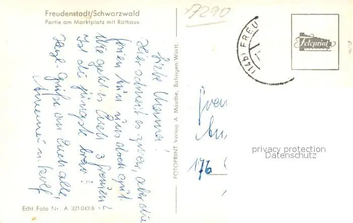 Freudenstadt Marktplatz mit Rathaus Freudenstadt postalisch gelaufen 1921-1965 Erhaltung siehe scans [WerneD78] WernPID7
