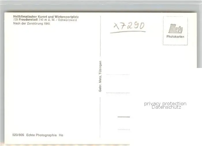 Freudenstadt Nach der Zerstoerung 1945 Freudenstadt postalisch nicht gelaufen nach 1965 Erhaltung siehe scans [WerneD78] WernPID7