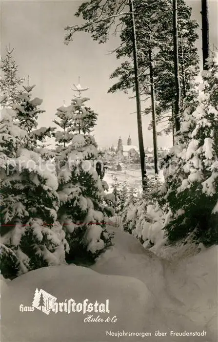 AK / Ansichtskarte Freudenstadt Neujahrsmorgen im Schwarzwald Winterimpressionen Stempel Freudenstadt