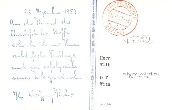 Freudenstadt Neujahrsmorgen im Schwarzwald Winterimpressionen Stempel Freudenstadt postalisch gelaufen 1953 Erhaltung siehe scans [FriedD77] Frierer