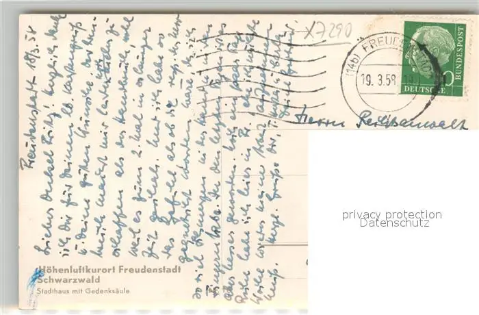 Freudenstadt Stadthaus mit Gedenksaeule Freudenstadt postalisch gelaufen 1959 Erhaltung siehe scans [WerneD78] WernPID7