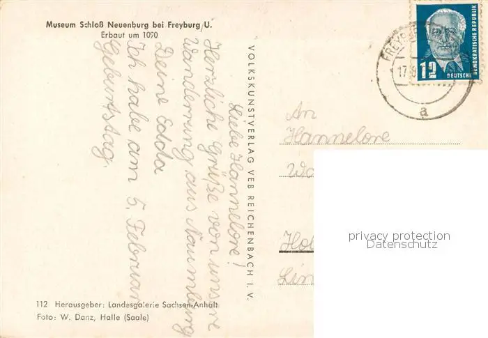 Freyburg_Unstrut Museum Schloss Neuenburg Aussenansicht Freyburg_Unstrut postalisch gelaufen 1953 Erhaltung siehe scans [LiesaD40] LiesID40