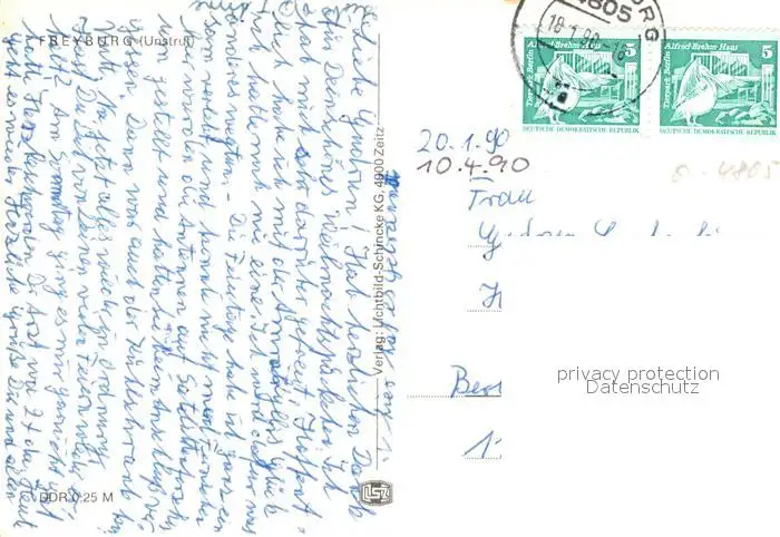 Freyburg_Unstrut Stadtpanorama Freyburg_Unstrut postalisch gelaufen 1990 Erhaltung siehe scans [FriedD77] Frierer