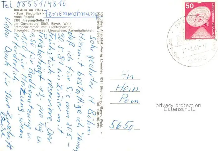 Freyung Haus zum Stadtblick Fliegeraufnahme Waldpartie Freyung postalisch gelaufen 1981 Erhaltung siehe scans [WerneD78] WernPID7